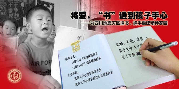北大学子们,为了孩子们,行动起来吧!如果你恰有适合中小学生们阅读的闲置好书,请在扉页写上祝福,捐给灾区的孩子们。