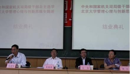 去年10月,中组部将北大、清华、人大、北师大、国防大、中央党校、国家行政学院7所高等院校设为司局级干部培训的试点基地之后,我校各院系于去年积极提交了专题方案,经过中组部几轮的筛选和调整,确定了一批培训专题和讲座。随后,中组部将这些专题和讲座提供给了16大部委的1500名部委司局级干部进行自主选题,结果有65.6%的领导干部选择了北大,远远超过其他院校。其中,由北大心理学系设计和承担的“管理心理与创新思维”专题,选学者达160多人,是所有高校专题课程中选课人数最多的。