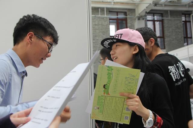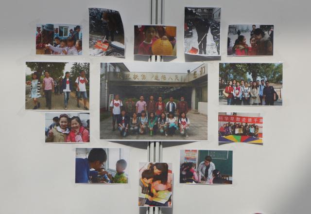为了保证在活动的开始展位可以顺利地迎接参观的同学,志愿者们早8点便到达展位,开始布置同学们精心设计的爱心形状照片墙。墙上照片是精选的上一年青年志愿者协会组织的支教、早教、临终关怀和毕业旧物回收等各种志愿者活动,它们体现出了同学们对志愿活动满满的热情。