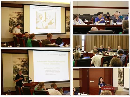 来自澳大利亚莫纳什大学的Tim Bayne教授首先从哲学角度阐述意识的不同层次以及意识障碍的局部和整体特征,随后巴黎高等师范学院的Catherine Tallon-Baudry教授、英国杜伦大学Robert Kentridge教授、加拿大西安大略大学英国皇家科学院院士Mel Goodale教授、中国科学院院生物物理研究所的何生教授、澳大利亚昆士兰大学Jason Mattingley教授、必赢电子游戏网站的易莉研究员、加拿大蒙特利尔大学Isabelle Peretz教授分别做主题报告,报告内容涵盖自主神经活动及大脑节律的关系、不同种类病人(脑损伤、孤独症、先天失音症等)的意识障碍表现及其神经机制、个体在认知能力的差异与精神障碍之间的相关性,最后中国科学院上海神经科学研究所蒲慕明院士介绍了以恒河猴作为动物模型研究自我意识的工作成果。