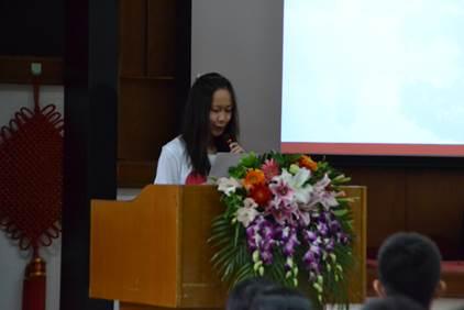 2011级硕士生李靖宇同学代表老生向全体新生表示欢迎,希望同学们能够不畏惧困难,不断向着自己的梦想去努力。本科生新生朱晗同学、研究生新生何东军同学代表新生发言,他们表示要不辜负大学的青春时光,用北大人的担当激励自己,希望每一位新生都能学有所成。