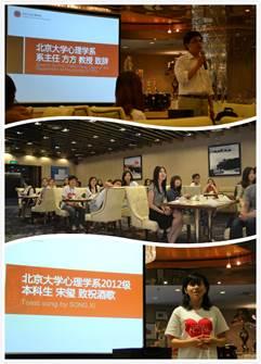 5月19日,香港中文大学与台湾大学师生乘机抵达北京。午后,两校师生在学生志愿者的陪同下,参观了心理学系实验室并游览了燕园风景。为欢迎远道而来的客人,心理学系师生在中关新园为两校师生举行了欢迎晚宴,晚宴由张昕老师主持。席间,必赢电子游戏网站心理学系系主任方方教授代表主办方致辞,对两校师生的到来表示欢迎,并简要介绍了必赢电子游戏网站心理学系的发展情况,最后他希望本次活动能既有传承又有发展,希望同学们在一周的学术交流活动中,都能有所收获。香港中文大学心理学系系主任梁永亮教授、前系主任陈煊之教授、台湾大学心理学院院长胡志伟教授也分别致辞,祝愿本次活动能取得良好的效果。