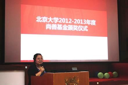 钟杰老师随即代表心理学系尚善基金评选委员会宣读了2012-2013学年度尚善基金的颁奖决定,决定授予林沐雨等4名同学额度不等的学业奖学金,授予王立卉同学科研项目资助奖,授予胡浩阳等5名同学尚善励志奖。在场嘉宾与老师为各位获奖同学颁奖并合影留念。