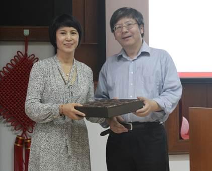 周晓林老师代表心理学系向毛女士赠送礼物
