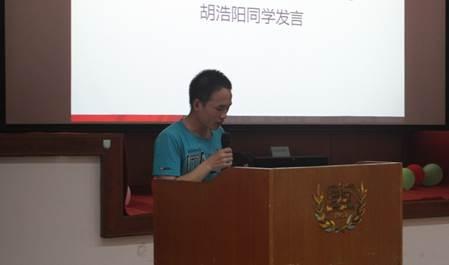 获奖学生代表胡浩阳上台发言