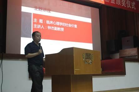 颁奖环节结束后,钟杰老师为大家作了题为“临床心理学的社会价值”的精彩讲座,钟杰老师结合自身经历,与大家分享了他在临床心理学研究领域的很多见闻与思考,深入浅出地让在场师生理解了临床心理学所具有的重大社会价值。随后的观众提问环节,钟老师又就大家关心的问题耐心细致地进行了回答。本次活动也就此圆满结束。