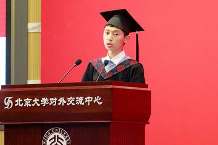 2014级本科生席可颂作为本科生代表发言。他回顾在心理学院学习的点点滴滴,表示心理学带给他的改变便是“用好奇看待大千世界,用包容面对百态人生”。他与毕业生们共勉,身为北大心理人,需要保持好奇、包容差异;作为北大人,更需要有指点江山的意气和悲天悯人的情怀。