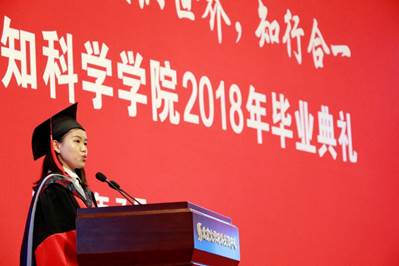 张昕副教授作为教师代表发言。他通过对“ending”有关的研究,指出同学们应该把毕业当作新一段人生历程的开始,同时不忘初心。张老师也分享了自己学习心理学的经历、体会和思考。他认为,心理学教会同学们认识自己,探索世界,让大家学会思考,并帮助自己和他人。他勉励毕业生们要看清目标、坚定前行,既要有“眼底未名水”,更要有“胸中黄河月”。