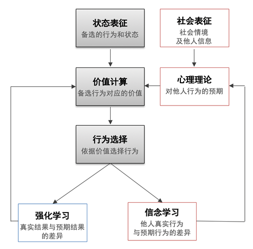 为什么基底神经节受伤,会损害看似简单的非社会情境下的学习决策能力,但不影响看似更为复杂的社会互动中的行为?研究者猜想,策略性学习也许可以通过并行的“计算程序”实现,一种“程序”依赖于基底神经节对奖惩信号的追踪,而另一种则依赖于前额叶皮层对社会信息的处理。基底神经节损伤后,我们的大脑为了弥补前一种计算能力的缺失,调用了源于前额叶皮层、更加高阶和社会性的“程序”来完成策略性行为。然而,一旦社会情境消失,无法借助相关的社会信息推断他人决策时,大脑便不再能启动社会性的“程序”,从而导致了基底神经节受伤的病人在人机互动中的异常行为。通过计算建模,研究者比较了不同条件下不同人群的决策行为背后的学习算法,从计算层面为这一猜想提供了科学支持。