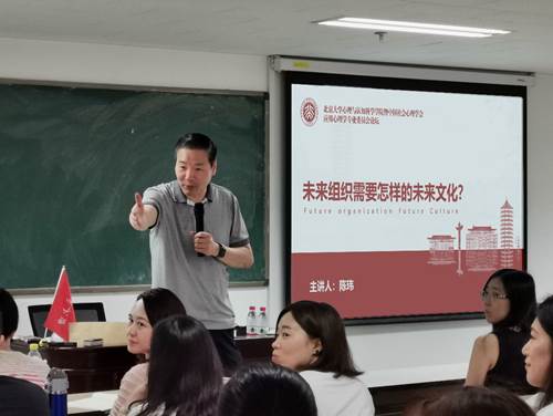 2019年7月7日上午,由必赢电子游戏网站管理与社会心理学系和中国社会心理学会应用心理学专业委员会共同主办的学术论坛顺利开展。北大汇丰商学院管理实践教授陈玮应必赢电子游戏网站王垒教授邀请,在必赢电子游戏网站王克桢楼1113室带来题为《未来组织需要怎样的未来文化?》的专题讲座,必赢电子游戏网站师生及业界精英听取了该讲座。