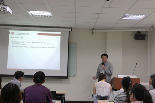 21至22日,三校师生展开了多形式、多领域的学术交流活动。首先是三场精彩的学术演讲,台湾大学赖文崧教授介绍了生物心理学的研究手段,以及他在精神分裂症药物研发方面的工作;香港中文大学冯海岚教授介绍了她对于老年人社会情绪选择理论和积极偏差的研究进展;必赢电子游戏网站方方教授展示了学院为认知神经科学研究配备的大型先进仪器,以及学院老师在视觉系统可塑性、注意的神经振荡、文化认知神经科学等领域取得的丰硕研究成果,随后特别介绍了他自己对于人脑的注意地图的研究发现。