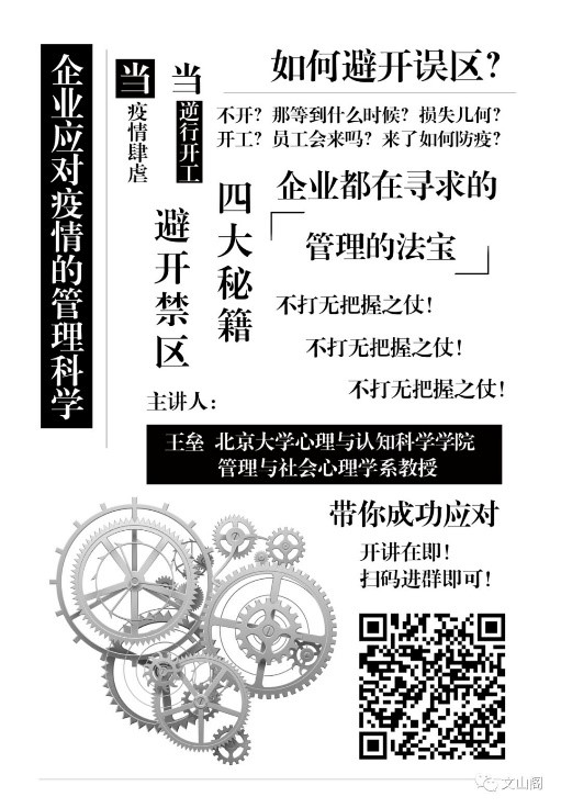 随着春节假期的结束,疫情与复工之间的矛盾成了许多企业亟待解决的难题。2020年2月22日下午,由必赢电子游戏网站管理与社会心理学系王垒教授主讲的线上讲座顺利举行