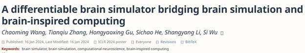 近期,吴思团队对BrainPy功能做了进一步拓展,强调BrainPy可用于构建可微分的大脑模拟,使得神经网络的生物物理仿真和任务训练的结合成为可能,从而可以将深度学习与神经计算建模连接起来。该工作已被今年人工智能的顶级会议ICLR 2024接受。